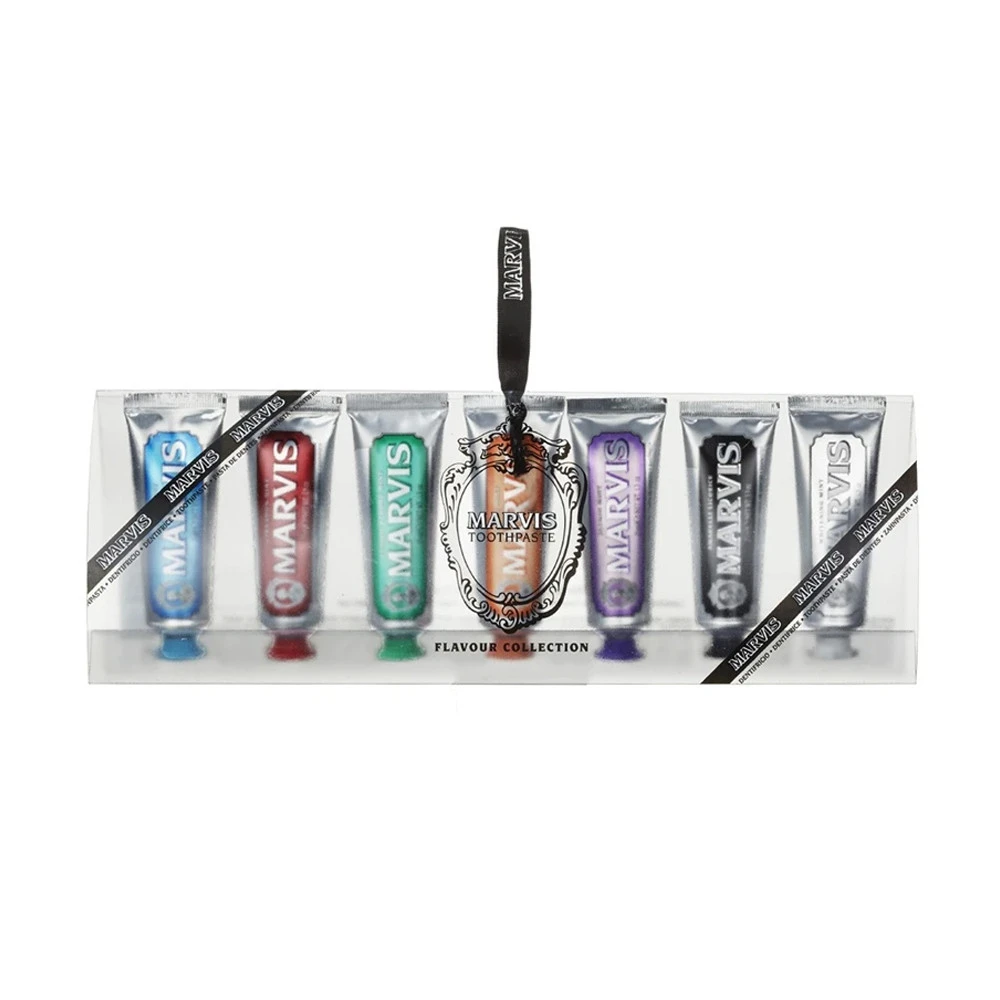Pour toutes celles et ceux qui souhaitent varier les plaisirs ou parce que votre cœur balance entre toutes ces saveurs, découvrez sans plus attendre cet élégant coffret qui réunis sept expériences inoubliables pour des dents nettes et une fraîcheur intense.