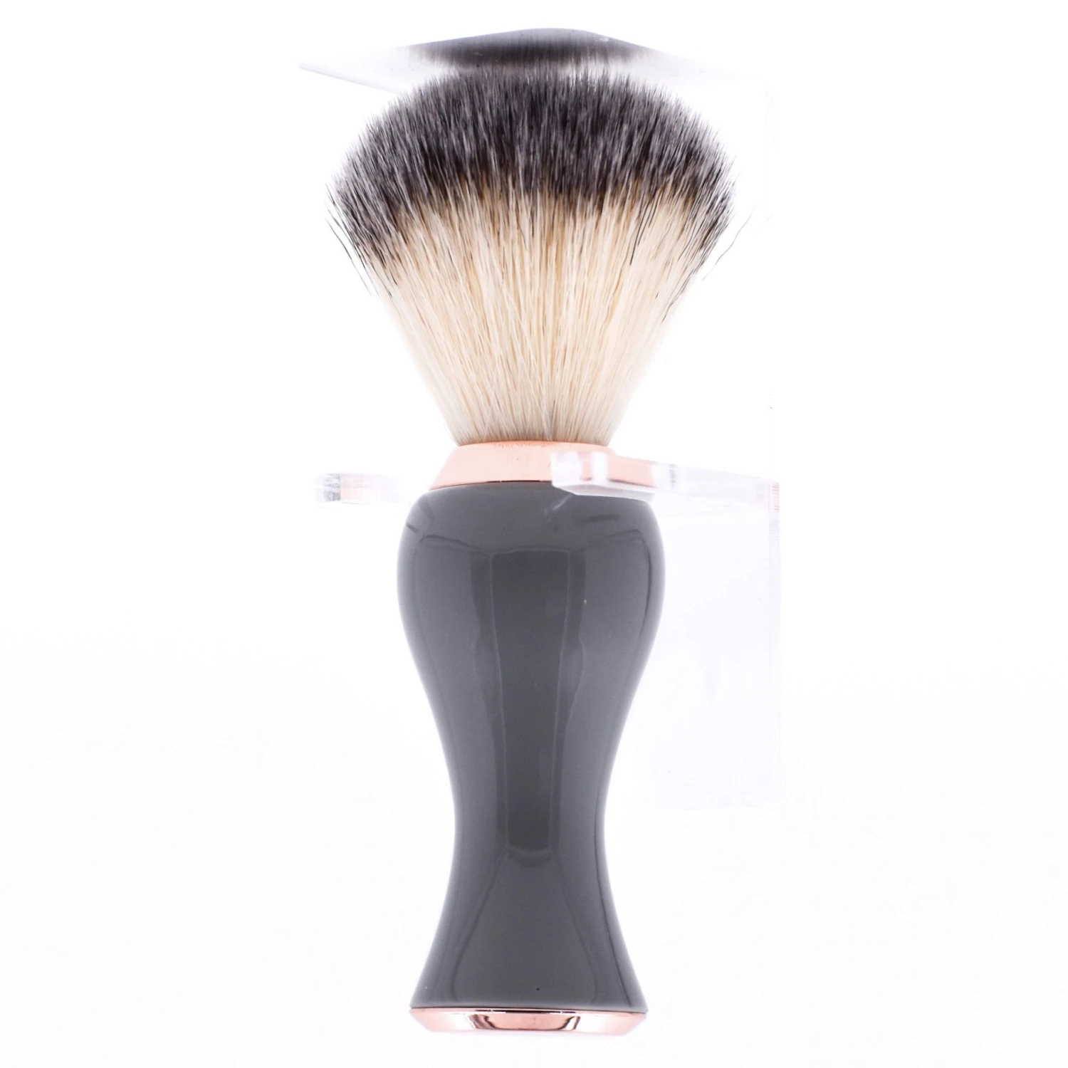 Poils synthétiques, manche en résine grise et poignée couleur or rose.