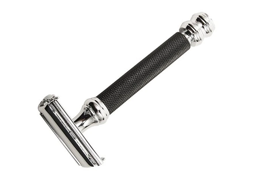 - Rasoir de sécurité à ouverture papillon : la tête s’ouvre en deux en actionnant le manche. L’emplacement de la lame apparaît.